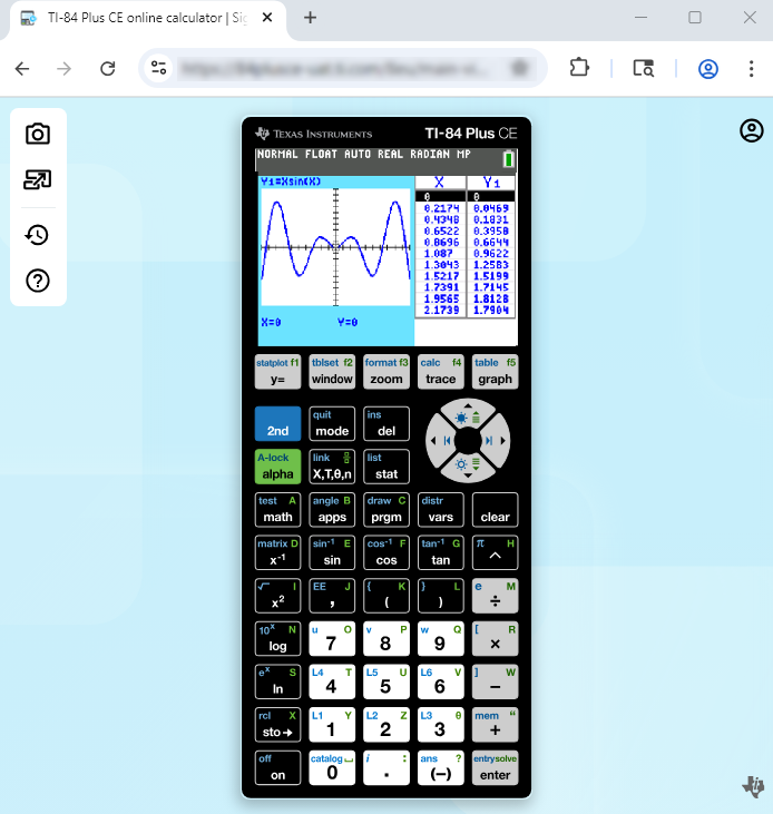 Introduction to the TI-84 Plus CE online calculator Workspace