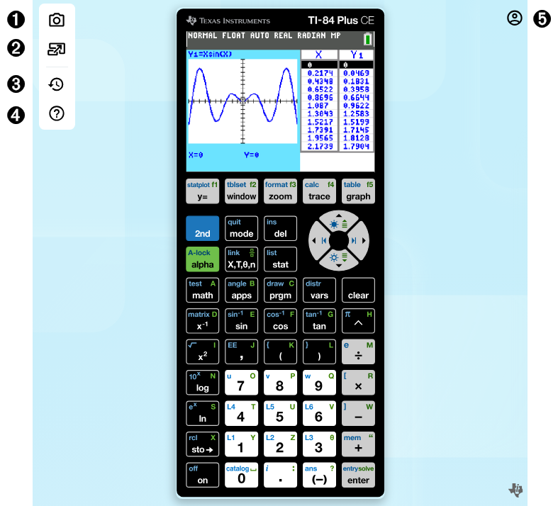 | • | The TI-84 Plus CE online calculator does not store or load calculator files from the computer or from a connected calculator. |