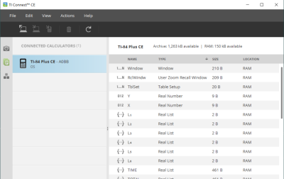 Toolbar - Click these icons to add, transfer, or delete files from your calculator.