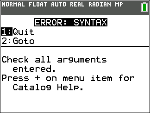 Note: If a syntax error occurs in the contents of a Y= function during program execution, then the 2:Goto option returns to the Y= editor, not to the program.