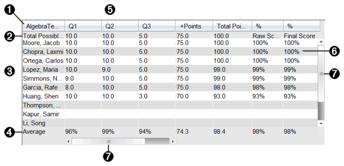 Durchschnitt. Zeigt die durchschnittliche Punktzahl für alle Schüler sowie die durchschnittliche Gesamtpunktzahl, den Rohwert und die endgültige Punktzahl an. |