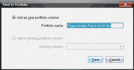 Das Dialogfeld In Portfolio speichern wird angezeigt. Standardmäßig wird der Name der Datei im Feld Portfolio-Name angezeigt. Wenn es sich bei der Datei um eine Schnellumfrage handelt, die Sie noch nicht <gespeichert haben, lautet der Standardname Poll#,.tns>. Zum Beispiel: Algebra1 - Fr. Smith QP2 10-26.tns.