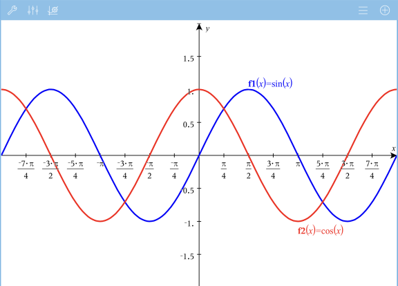 Exact Arithmetic and CAS Only: You can change the tick mark labels to display multiples of Pi, radical numbers, and other exact values by editing the XScale or YScale values in the Window / Zoom > Settings.