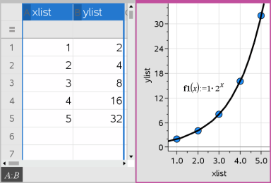You can easily create a dot plot of the data in one column or a scatter plot of two adjacent columns by using the Quick Graph feature. This feature displays the graphed data using the Data & Statistics application.