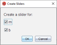 Sliders can be created for you automatically in the Graphs application and in the analytic window of the Geometry application. You are offered automatic sliders when you define certain functions, equations, or sequences that refer to undefined variables.
