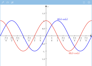 Solo Aritmética exacta y CAS: Puede cambiar las etiquetas de marcas de verificación para mostrar múltiplos de Pi, números radicales y otros valores exactos si modifica los valores de Escala X o Escala Y en la Configuración de> Ventana/Zoom.