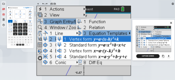 Astuce : Pour voir l’ensemble de l’espace de travail de la calculatrice lors de la capture de l’écran, utilisez la barre de redimensionnement pour réduire la taille du clavier jusqu’à ce que l’espace de travail ne soit plus bloqué par la fenêtre contextuelle de capture d’écran.
