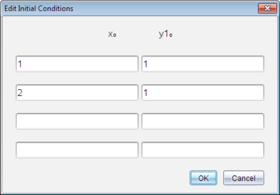 | 3. | Saisissez la condition initiale pour la valeur indépendante x0 et pour y10. |