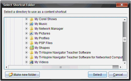 Het dialoogvenster Selecteer snelkoppelingsmap wordt geopend.