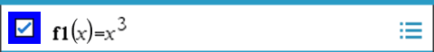 In dit voorbeeld is f1(x)=x3 een definitie van een variabele, waardoor deze kan worden weergegeven in andere toepassingen, bijvoorbeeld in een tabel in de Lijsten & Spreadsheet-toepassing.