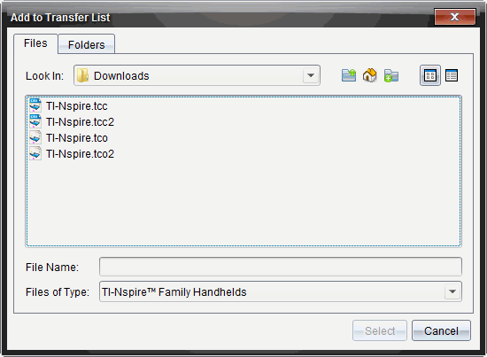 | • | For å oppgradere en TI-Nspire™ CX II-T handheld, velg TI-Nspire.tct2. |
