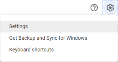 | 1. | No Google Drive, clique no ícone de definições e selecione Definições. |