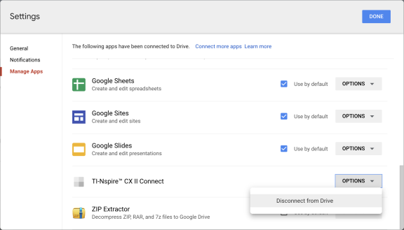 Desligar TI-Nspire™ CX II Connect do Google Drive