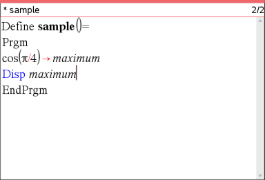 Um programa ou uma função em execução não mostra os cálculos intermédios excepto se incluir um comando para os ver. Esta é uma diferença importante entre efectuar um cálculo na linha de entrada e efectuá-lo numa função ou num programa.