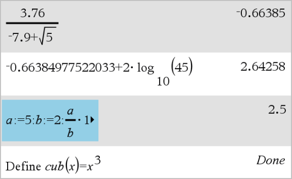 Pode copiar rapidamente uma expressão, uma "subexpressão" ou um resultado do histórico para a linha de entrada.