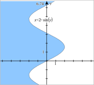 | 3. | Ange en "x=" eller "y="-ekvation, exempelvis. x=sin(y)*2, eller skriv en olikhet exempelvis. x<2*sin(y), och tryck på enter. |