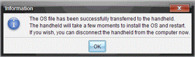 下载完成后,Information(信息)对话框将打开,指示操作系统文件已成功传送至手持设备。您可以断开与手持设备的连接。 |