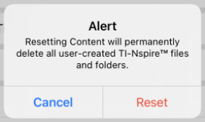 Når nulstillingen er gennemført, vises TI‑Nspire™-hovedskærmen igen.
