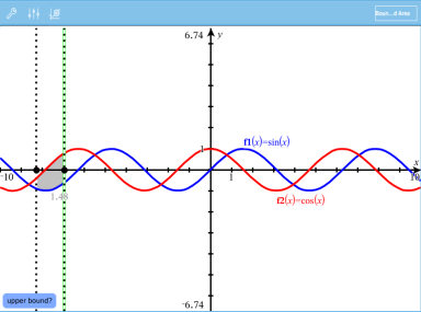 Du kan bruge Grafer-applikationen til at få adgang til området mellem kurverne.
