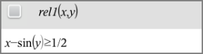 For eksempel: x=sin(y)|−1≤y≤1 vil fungere, men x=sin(y)|−1≤x≤1 vil ikke |