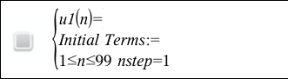 | 2. | Indtast det udtryk, der definerer sekvensgrafen. Opdater det uafhængige variabelfelt til m+1, m+2, osv., hvis nødvendigt. |
