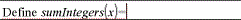 | 1. | Gå til indtastningslinjen i Regner, og skriv Define cum_sum(x)=. Tryk ikke på Enter endnu. |