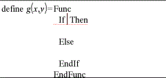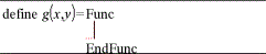Bemærk: Du kan kun oprette flerlinjede funktioner ved hjælp af kommandoen Define (Define). Du kan ikke anvende := eller →-operatorerne til at oprette flerlinjede definitioner. Func...EndFunc-skabelonen fungerer som struktur for sætningerne i algoritmen.