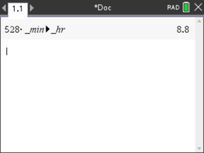 Eksempel: Konverter 528 minutter til timer. Det ønskede udtryk er 528•_min►_hr.