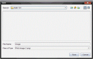 Du kan gemme hentede skærmbilleder til brug i andre TI-Nspire™ -dokumenter, der kan bruge billeder, eller til brug i andre applikationer som f.eks. Microsoft® Word. Du kan gemme billeder i følgende formater: .jpg, .png eller .gif. Du kan gemme et billede ad gangen, vælge flere billeder, der skal gemmes, eller gemme alle hentede billeder.
