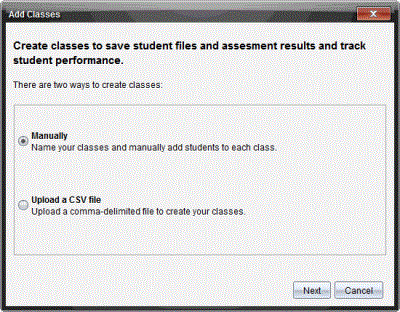 | 3. | Vælg Manuelt fra dialogboksen Tilføj klasser. |