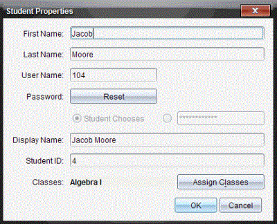 Du kan ikke ændre kontooplysninger for elever, der er logget på TI-Nspire™ Navigator™-netværket.