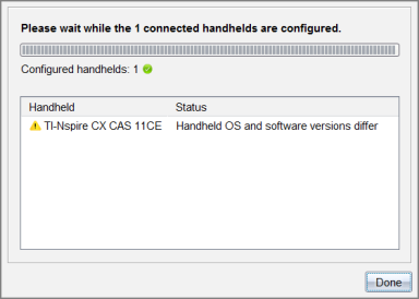 En underretning dukker op på hver håndholdte, og en statuslog rapporterer fejl og advarsler til læreren. Klik Udført for at lukke loggen.