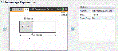 Miniaturepanel (forhåndsvisning) – Indeholder oplysninger om en håndholdt enhed, når du klikker på Tilsluttede håndholdte i ressourceruden og derefter en håndholdt enhed i indholdsruden. Hvis du vælger en TI-Nspire™-fil i indholdsruden, viser miniaturepanelet den forhåndsvisning, som er tilgængelig for den pågældende fil.