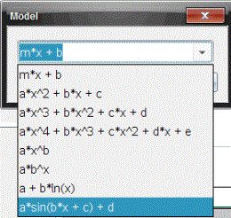| 2. | Klik Undersøg data> Regressionsmodel/Kurvetilpasning. |