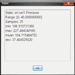 Du kan frembringe en statistisk oversigt (minimum, maksimum, gennemsnit, standardafvigelse, antal målinger) for alle de indsamlede data eller for et udsnit. Du kan også frembringe en kurve, der er baseret på én af flere standardregressionsmodeller eller på en brugerdefineret model, som du selv opretter.