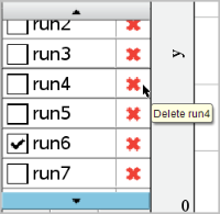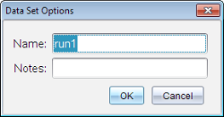 Som standard navngives datasæt run1, run2 osv. Navnet på hver datasæt vises i Tabelvisning.