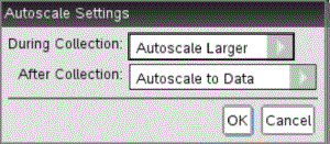 | • | Autoskalér større - Udvider grafen efter behov, så den viser alle punkter, efterhånden som du indsamler dem. |