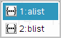 En liste viser navnene på tilgængelige variable.