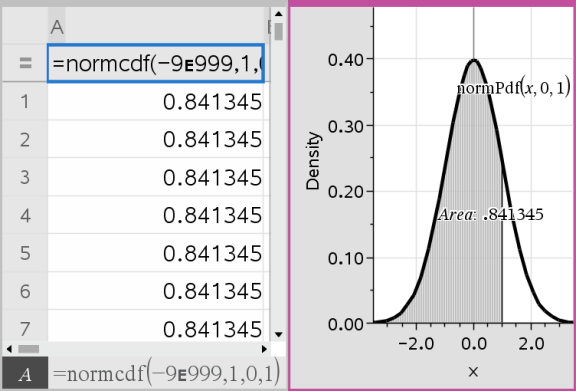 | 3. | Skriv plotparametrene i guiden Normal Cdf. |