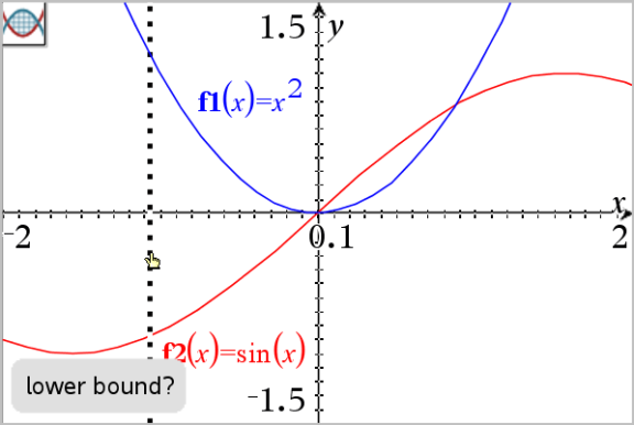 | • | For at ændre den nedre eller øvre grænse, skal du trække i den eller indtaste nye koordinater for den. Du kan ikke flytte en grænse, der ligger på et skæringspunkt. Men punktet flyttes automatisk, hvis du redigerer eller manipulerer kurverne. |