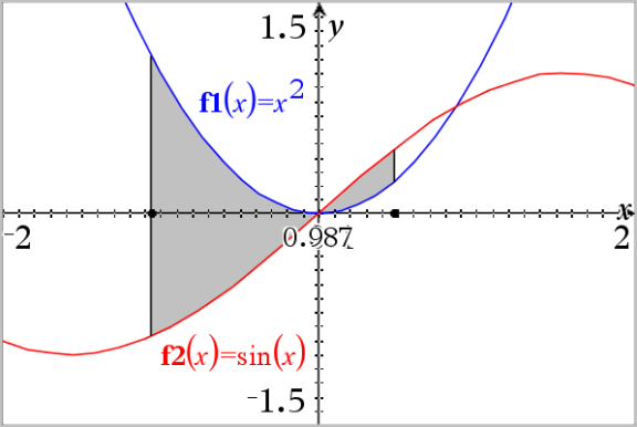 | 2. | Klik på to kurver for at vælge dem. – eller – Klik på én kurve og x-aksen. |