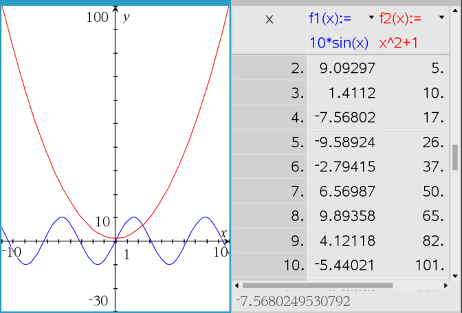 Visning af tabeller i applikationen Grafer