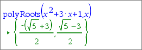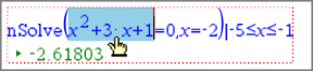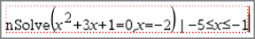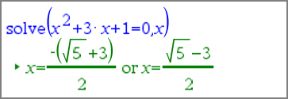 | 1. | Indsæt et matematikfelt, og indtast ligningen x2+3x+1=0, men tryk ikke på Enter endnu. |