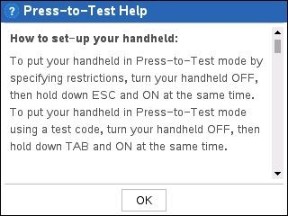 | • | I vinduet Tryk-for-Test klikkes på Hjælpeknappen |