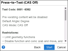| 5. | Tryk på Start for at gå i Tryk-for-test-tilstand. |