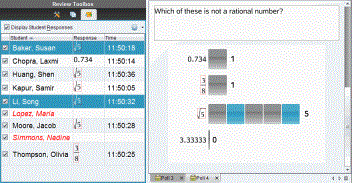 | ▶ | Klik på et elevnavn i Elevvinduet for at se svaret i Datavisningsvinduet. Du kan vælge mere end en elev ad gangen. |
