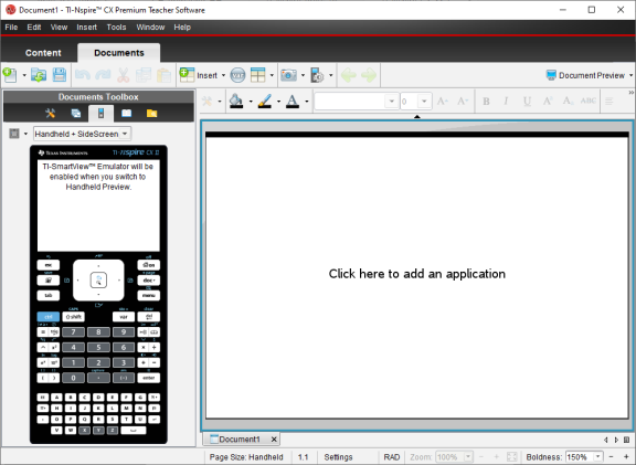 TI-SmartView™-emulatoren er placeret i Dokumentarbejdsområdet. Sådan åbnes emulatorvisningen: