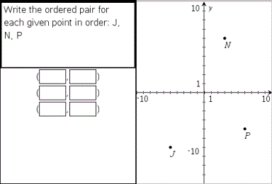 Et spørgsmål med numerisk indtastning (x,y) beder eleven om at svare med et koordinatpar.