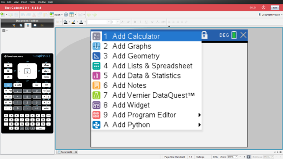TI-Nspire™ CX Student Software er designet til at holde brugeren i testtilstand uden adgang til andre applikationer under hele testen. Hvis fokus skifter væk fra softwaren, bliver titellinjen rød.