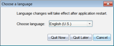 Klik på Afslut senere for at fortsætte arbejdet. Sprogændringen udføres ikke, før du lukker og genstarter softwaren på et senere tidspunkt.